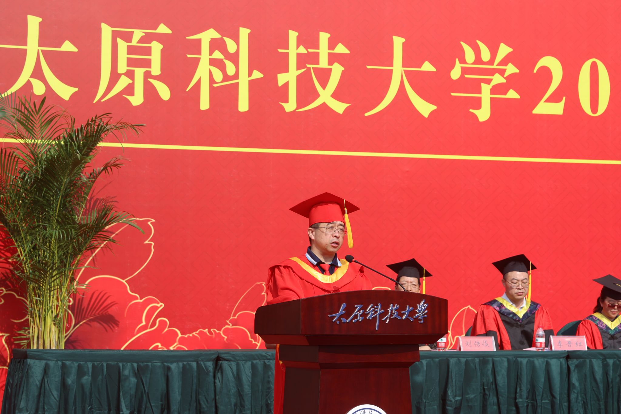 校党委副书记、校长白培康向即将毕业的学子们深情致辞,他讲到,几年来,同学们见证了祖国一个个重大的历史时刻,亲身经历了学校改革与发展的每一个步伐,在同学们的共同参与下,学科建设蓄力勃发,人才培养硕果累累,科技创新不断突破,师资结构持续优化,办学条件大幅改善,学校事业发展日新月异,办学水平与综合实力稳步提升。同学们用实际行动践行了“负重奋进、笃行求实”的校训精神,用刻苦、勤奋雕刻出精彩的大学时光,充分展现出新时代大学生“立大志、明大德、成大才、担大任”的优秀品质。